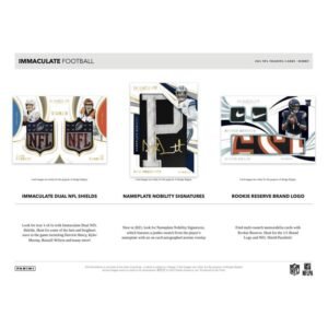 - New in 2021 look for the all new memorabilia cards in Clearly Immaculate Rookie Jerseys and the unique Gatorade Sideline Towels! Also be on lookout for new on-card autographs in Nameplate Nobility Signatures!