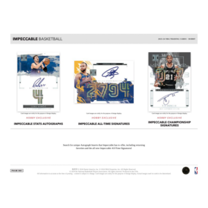 Impeccable makes its return to the hardwood for 2023-24 NBA Season! Impeccable Hobby Boxes contain 5 On-Card Autographs, 3 Base or Base Parallels, and 1 Special Insert (Stainless Stars, Silver/Gold Bar Insert, Game Day Logoman/Rookie Logoman, or Un-Signed Number Call-Out Card)!