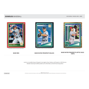 – Look for an incredible lineup of the game’s top Legends, Stars, Rookies, and Prospects in 2025 Donruss Baseball, featuring incredible parallels such as Red, Black, and Gold Vinyl among others!